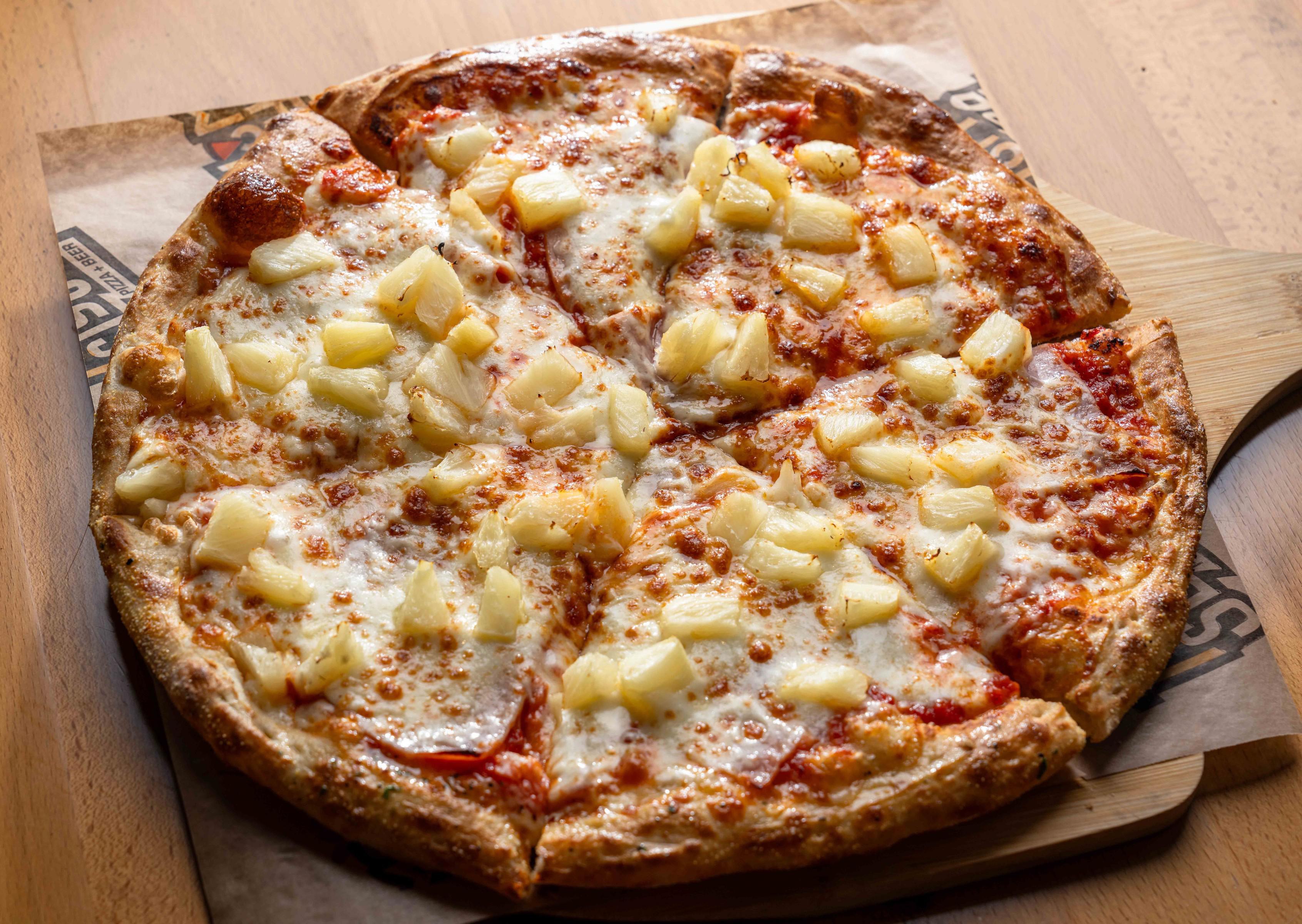 premium ham, pineapple & mozzarella cheese over tomato sauce