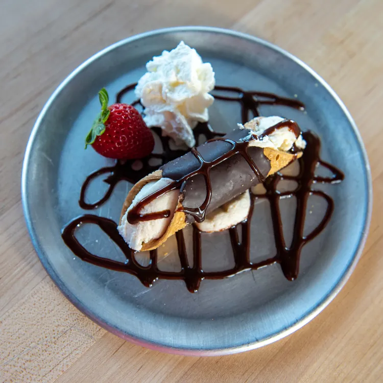 Chocolate dipped cannoli filled with sweet ricotta cheese & chocolate chips